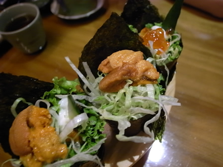 除了我以外三位低收入戶的海膽手捲跟鮭魚卵手卷