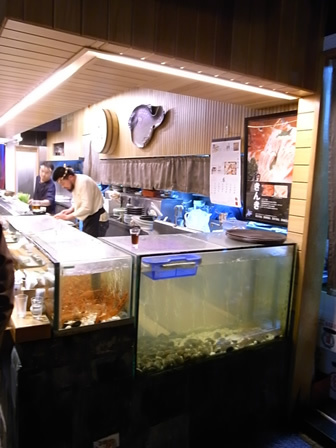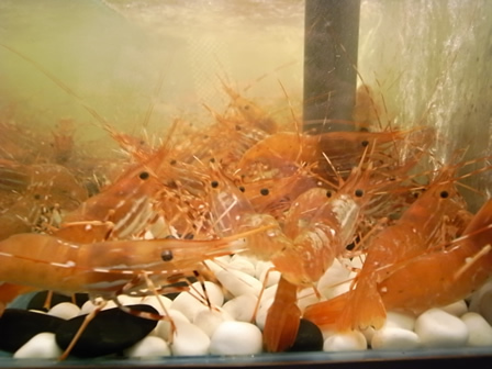 吧檯旁邊活蹦亂跳的牡丹蝦